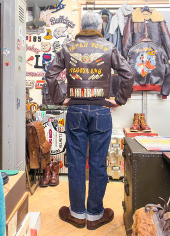 一つ一つの思い出と感謝を刻もうと、レザーフライトジャケットに、当時のパイロットよろしく、行かせて頂いた都市名を爆撃マークにして、身頃や背中や袖にペイントしました(笑)。